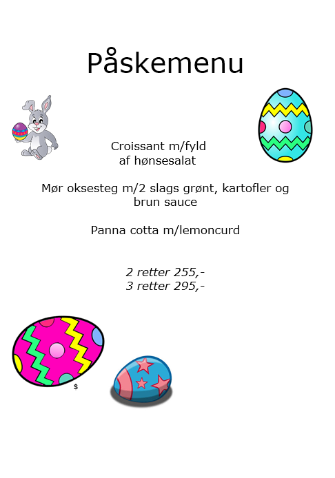 Dette er faktisk vores motto her på Kroen. Har I en forespørgsel på noget mad, vi ikke fører her på siden, så ring til os, og vi vil med glæde opfylde Jeres ønsker. Mange retter kan vi nemt lave på forespørgsel - dette gælder eksempelvis stegt flæsk med friskhakket persille og hvid sauce. Bestilles senest to dage før Jeres arrangement.